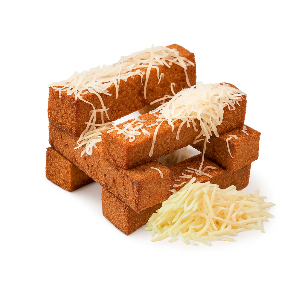 Поджаренные кусочки хлеба с сыром и нежным сливочно-чесночным соусом