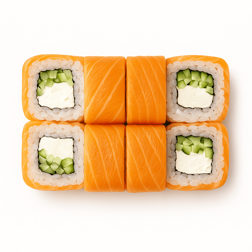 Лосось, рис, сыр творожный, огурцы свежие, нори