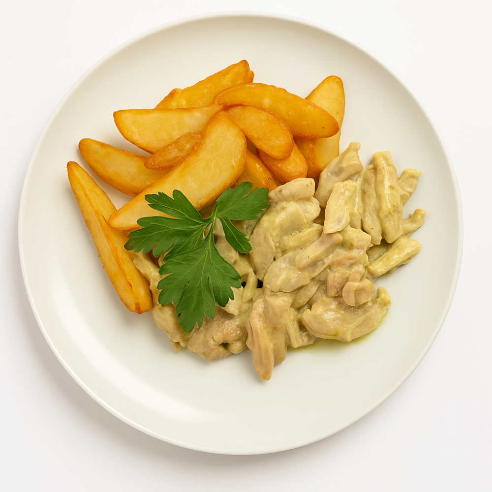 Бефстроганов из говядины с картофельным пюре