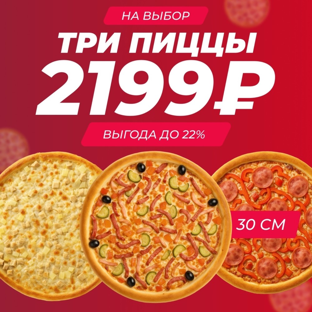 Акция Три пиццы 25 см на выбор